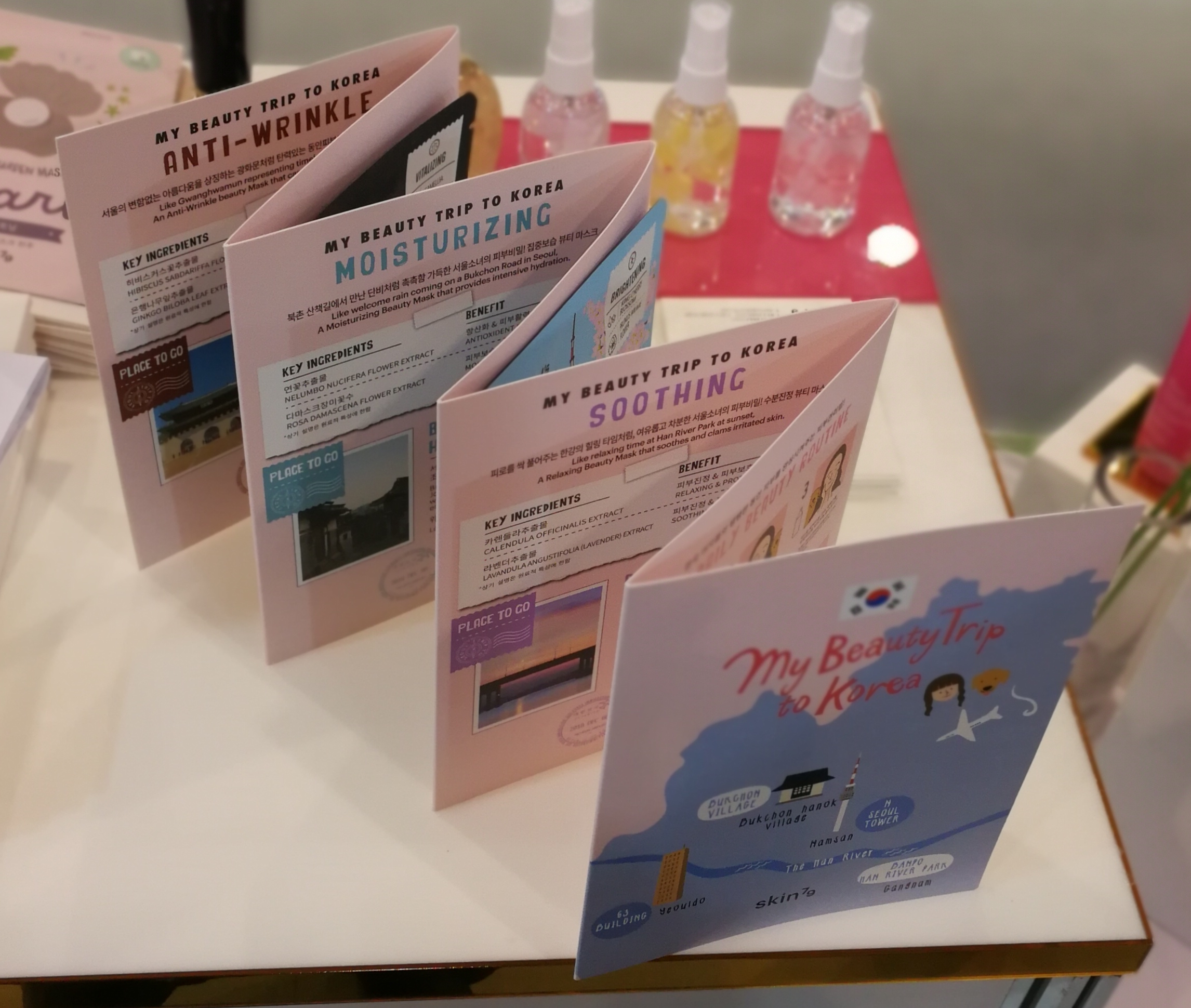 The first thing that drew my eye was the design of their Seoul Girl’s Beauty Secret masks – five beautifully packaged sheet masks whose packaging features different Seoul tourist attractions, always with the figure of a girl and her dog in the foreground. What a fabulous idea – using cosmetics packaging to tell a story or, in this case, promote the heritage and/or history of a brand.