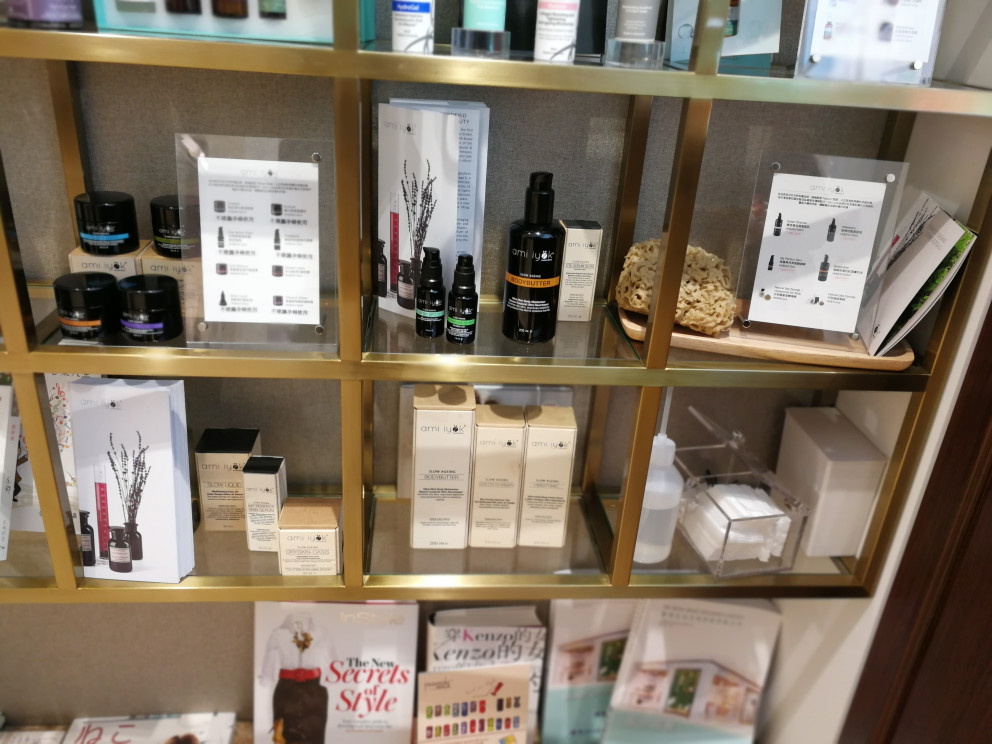 I think I had subconsciousy expected the store to look like a Beyorg outlet – Beyorg is the organic beauty retail market leader in Hong Kong; the company has stores in most of the city’s luxury malls. The interior design of the average Beyorg is severely green and eco – wooden elements, green plants and recessed lighting.