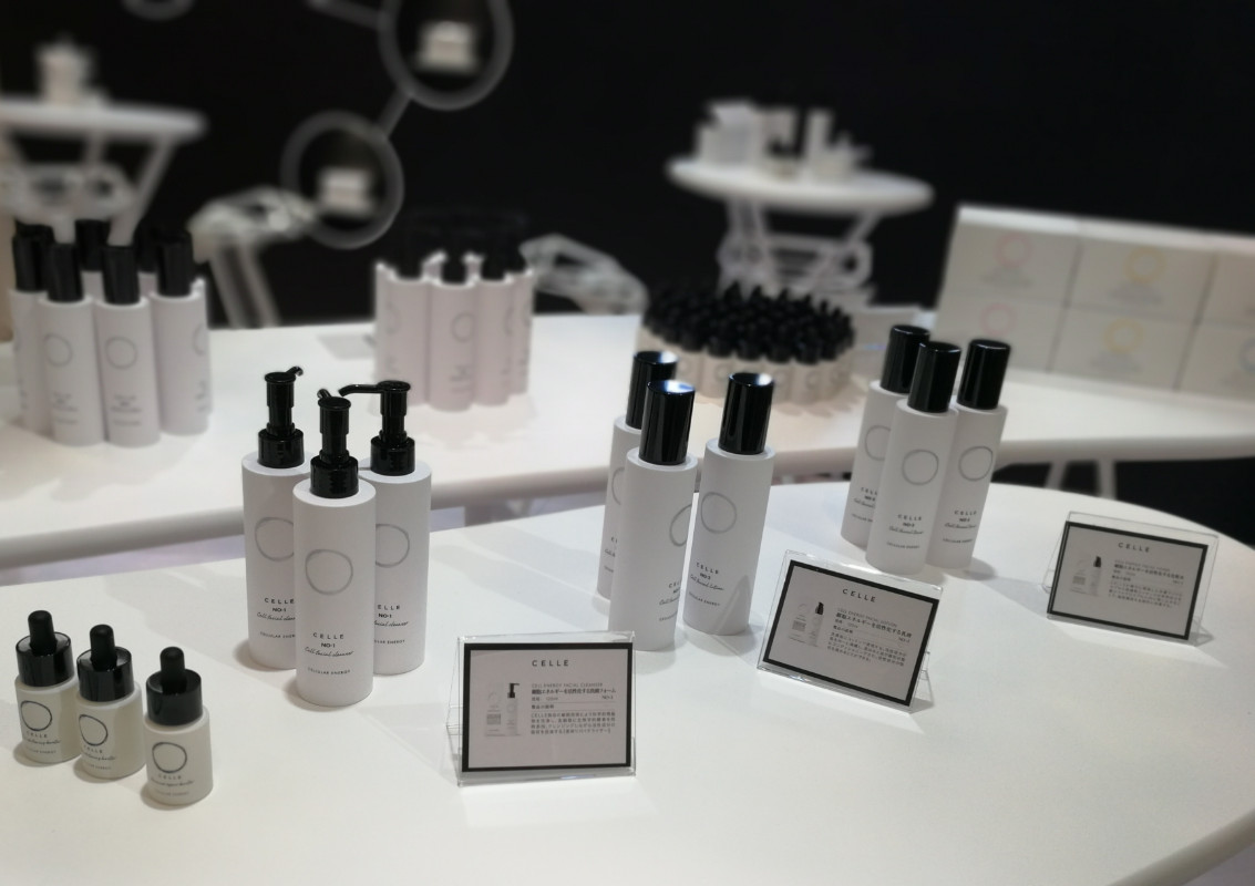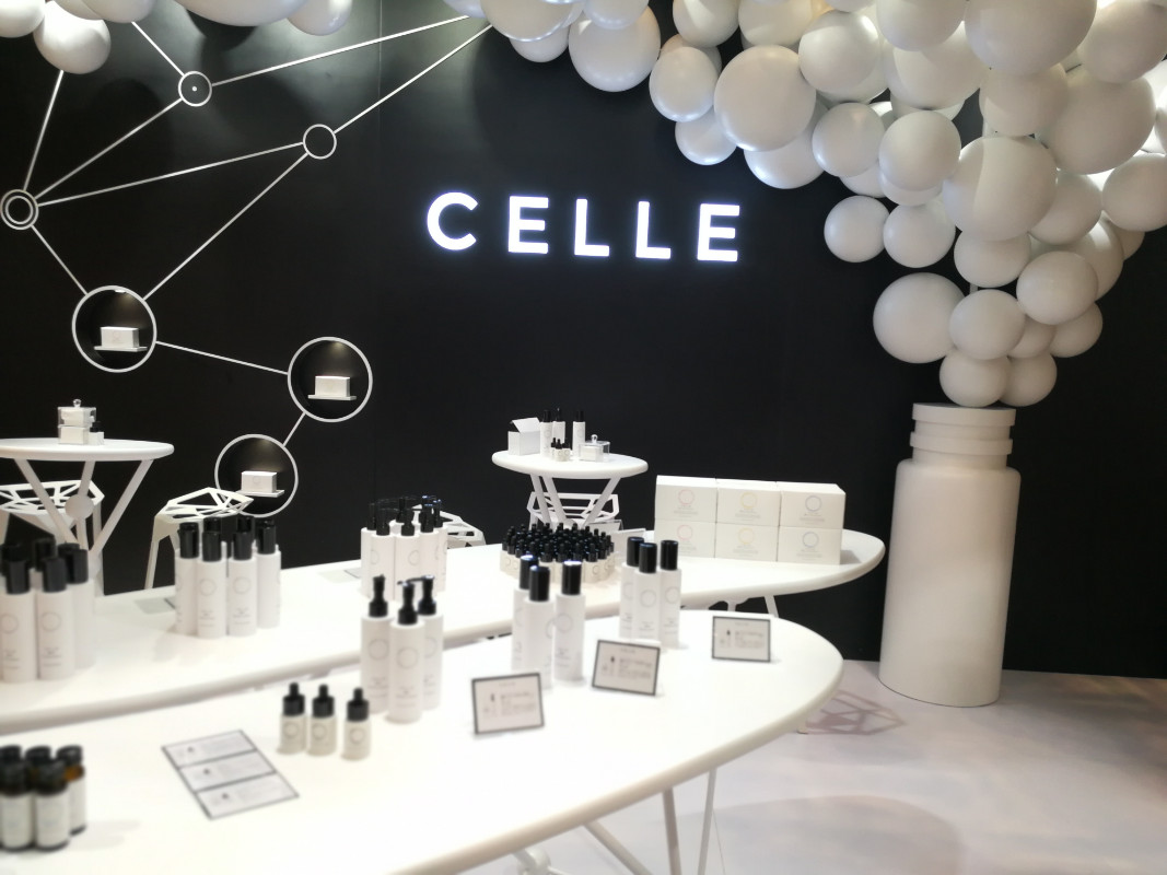Japanese beauty brand Celle had an eye-catching exhibition booth at Cosme Tokyo, all black and white and decorated with balloons. The 7-sku product range will launch in March 2019, I was told, with branded stores across Japan. The line-up includes a booster serum, a cleanser, lotion and toner and – since this is a Japanese skin care brand – three beauty supplements. The active ingredient is fish collagen which is said to be more easily absorbed by the skin than collagen derived from other sources.