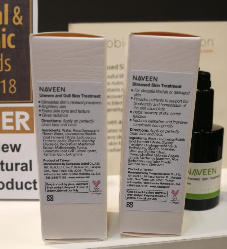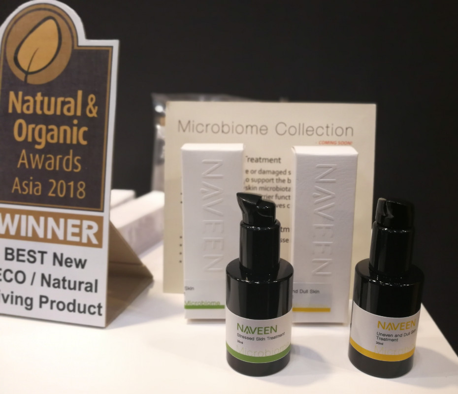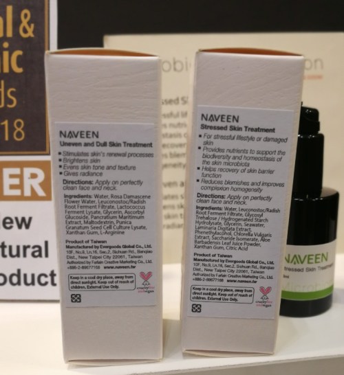 Naveen is one of my favourite Taiwanese brands and it’s always a pleasure seeing the brand (and its founder Karen) at the various trade shows that we both frequent. At Cosmetokyo Karen presented a whole range of new launches (which will also be shown at Vivaness organic trade show in Nuremberg next week), including the Microbiome collection of two face care serums which feature an extra portion of fermented and probiotic ingredients.