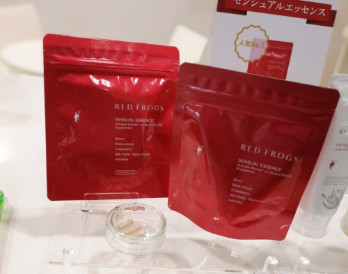 Red Frogs was another interesting Japanese brand: the company specialised in phytotherapy-based skin care and beauty supplements for menopausal women. The range of this new brand includes five products. The Sensual Essence supplement capsules (see pic below) contain cabbage-derived boron, cranberry extract, Black cohosh extract, milk thistle extract and artichoke extract.