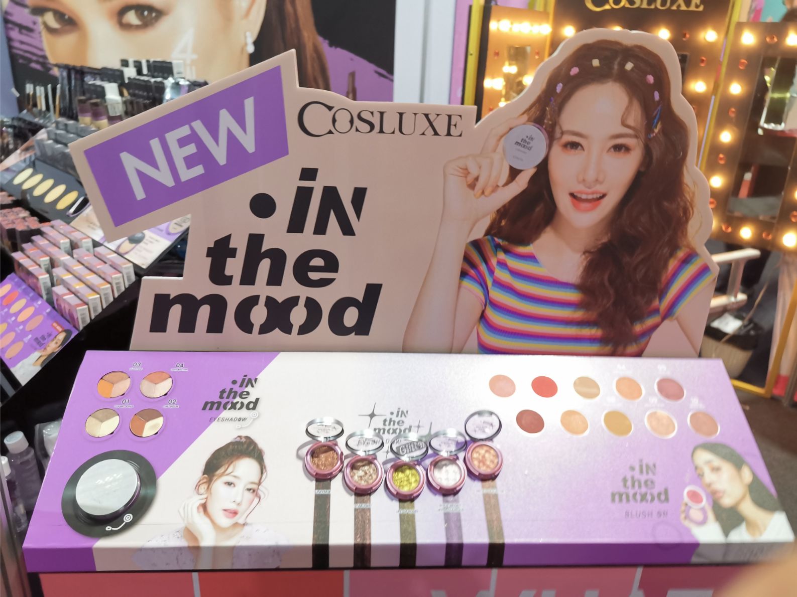 The portfolio offers five different lines of eyeliners (glitter, gel, black, waterproof, liquid, pencils) and almost 20 different fake lash products. On the face side Cosluxe offers two ranges of liquid foundations (Tap Mix Me with three shades and Shine & Shade Super Matte in four colours), powder foundations (the Tap Semi-Foundation Oil-Locked in five colours and Tap Blur & Bright Air Compact Powder – one shade only) and cream concealers (four different shades) as well as powder blushes as part of the new In The Mood collection (see below).