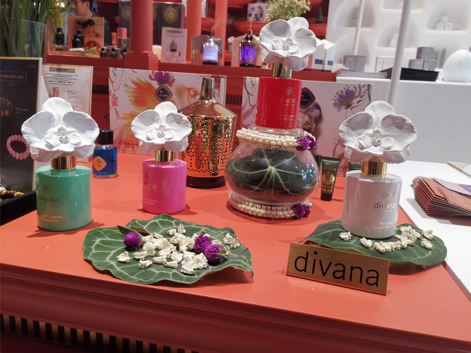 A well-known Thai spa brand is Divana (body care, spa and home fragrance) with its sister brand Dii (face care). Divana has been around for almost 20 years, Dii was introduced some ten years ago. There are four Divana spas in Bangkok and one will open in Pattaya this December. The company also operates the intriguing-sounding Divana Café chain (there are two locations in Centralworld mall here in Bangkok) and brand counters in around half a dozen Bangkok malls plus in ten King Power Duty Free stores across Thailand.