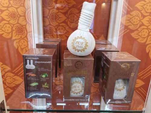 And of course FCT Herb also offers a herbal stamp, one of the quintessential Thai spa products. The stamp is a blend of medicinal and wellness herbs including camphor, galangal, lemongrass, kaffir lime leaves and tamarind leaves. This herb mixture is bound up in a stamp-shaped cotton cloth which is then saturated in water, heated and then used to massage the body by “stamping” it with the warm herb mixture. FCT Herbs sells its products mostly online; the company’s home market is Thailand but I was told that they also have customers in Japan and China.