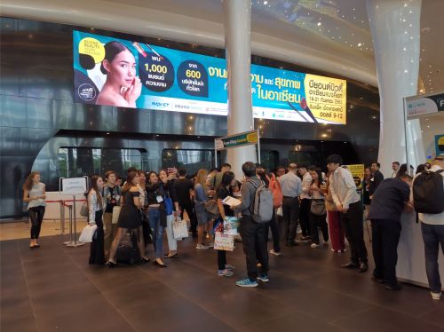 You have to depend on Grab cars (Grab’s the leading ride-sharing app in South East Asia) or taxis and in the Bangkok traffic this is expensive and very time-consuming. It took my Grab around 60 minutes to reach the expo centre every morning and in the evening, the fares back to Sukhumvit (where my hotel was located) were so expensive that I ended up taking a private van shuttle to the closest Skytrain station. Either way, it was exhausting and expensive. And for such a small show like Beyond Beauty it simply isn’t worth it.