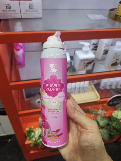 The Bubble Cleanser makes the bathroom experience fun: press the dispenser and pink strings of surprisingly firm and flexible foam come shooting out; the baby can play with the foamstrings and mold them into shapes and once you add water, the pink foam turns into a bubbly cleanser and can be rinsed off.