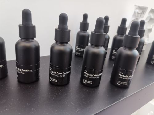 The bottles of the Water Essence line are highlighted with blue foil and offer typically Asian herbal skin care ingredients such as galactomyces ferment filtrate, centella asiatica (cica) and mugwort. The Energizing Ampoule range (silver foil) comprises skin care ingredients for different skin types, such as calamine, Q10, peptides and hyaluronic acid while the Oil Serum line (rose-gold foil) features pure plant oils and plant oils blends (tea tree, camellia seed and jojoba, for example). There is also a black-packaged range of ampoules which offers ingredients like propolis and vitamin blends, several face creams and four toners.