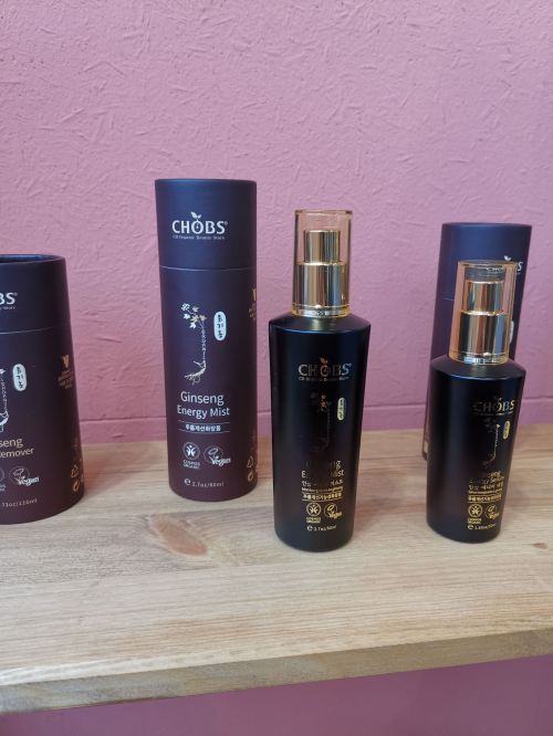 Anyway, it was good to see the brand again and even more exciting to check out Chobs’ latest beauty launch: the 6-sku Organic Ginseng range (the packaging was difficult to photograph, excuse the sub-par quality!). The line-up offers a cleanser, face cream, serum, face mist, sheet mask and under-eye masks all based on organic ginseng water. Medium-strong ginseng scent and lovely textures.