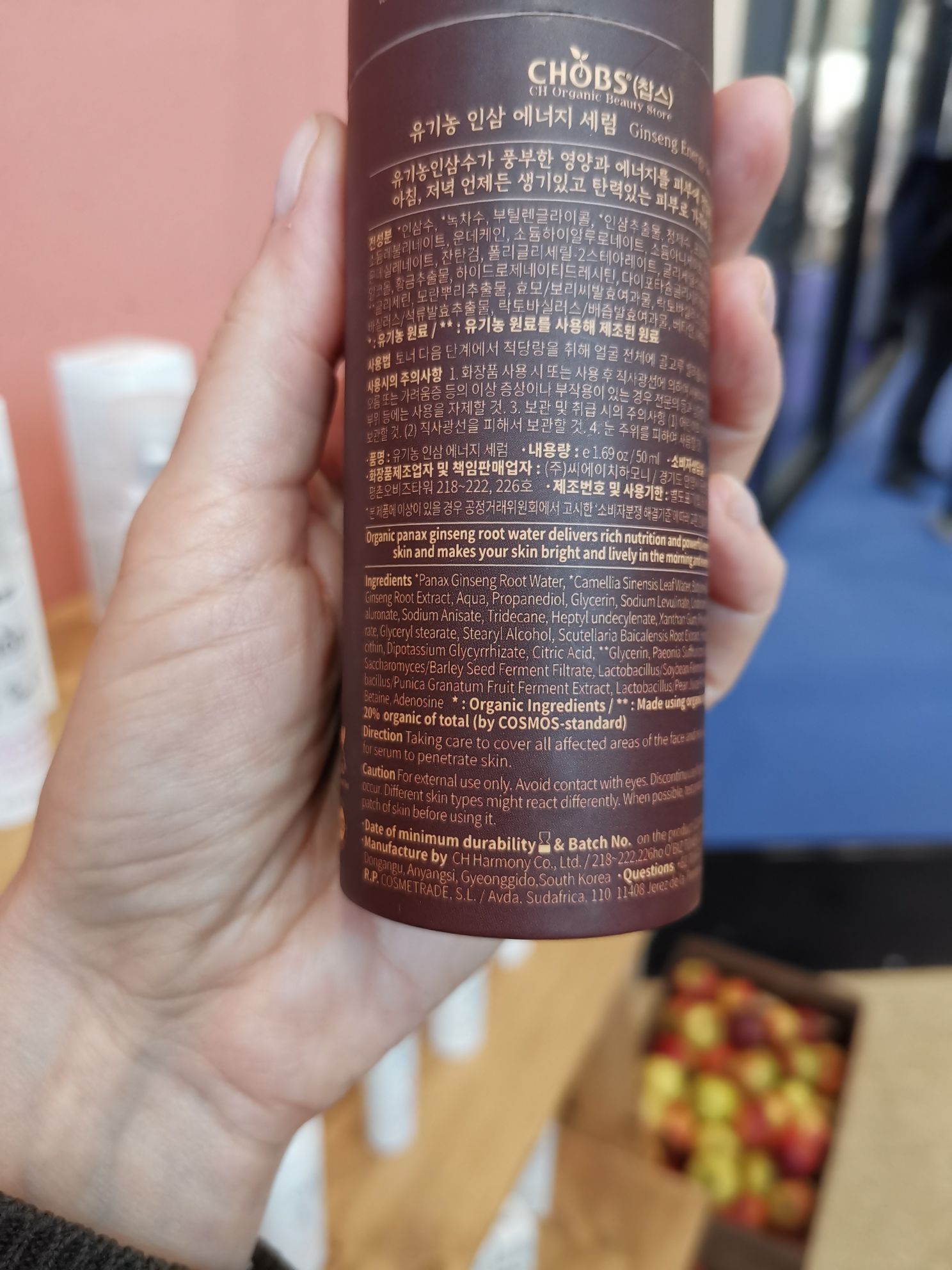 I was told that most ginseng beauty brands use only the root of the plant; Chobs, however, uses extracts from the entire ginseng plant, from root over stems to the ginseng flower. I’m not going to go into detail about why ginseng is such a popular ingredient in Korean (and Asian) beauty and as a health food (otherwise this would turn into a really long sidebar!). Suffice it to say I received several product samples and the Ginseng Energy Serum, my goodness!