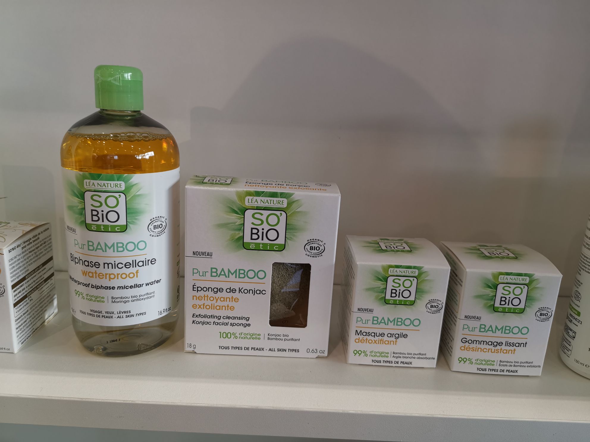 Anyway, I was eager to check out Jonzac’s novelties and in the picture above you can see the brand’s newest launch, the Rich Moisturizing Body Cream – it’s a lush and super soft formula; absorbs quickly into the skin and features the classic Jonzac fragrance. Love it! And So’Bio étic presented Pur Bamboo, a new 4-sku cleansing range formulated with bamboo extract. The line-up offers a micellar water, a face scrub with bamboo particles, a rinse-off clay mask and a konjac sponge.