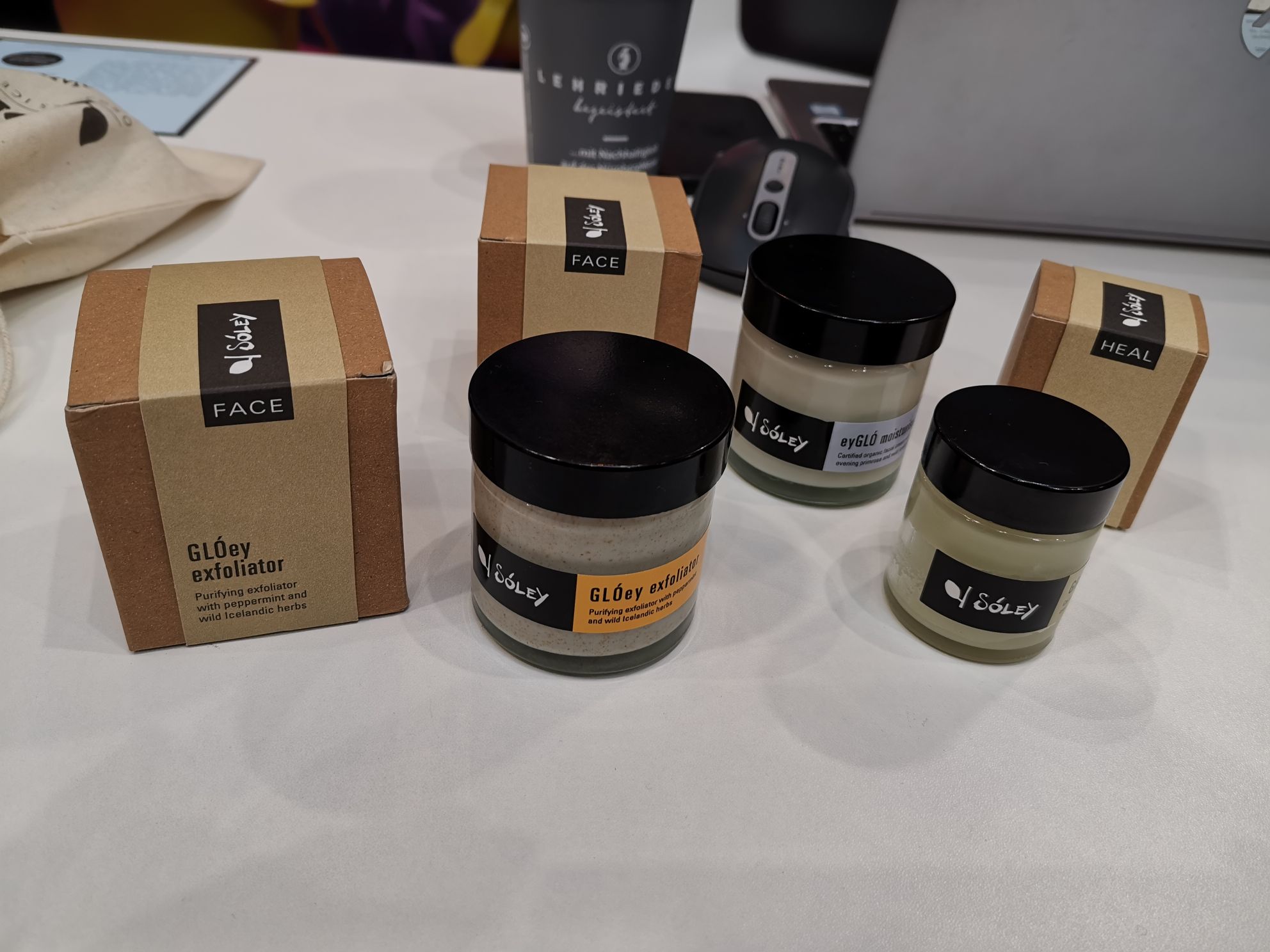 Icelandic brand Sóley Organics was one of the exhibitors in the Breeze section (the special Vivaness showcase for newcomer and emerging beauty brands and first-time exhibitors). I knew I had seen this beauty brand at a trade show before but couldn’t remember where, so I went through my old articles and here we are: Natural & Organic Products Europe 2016.