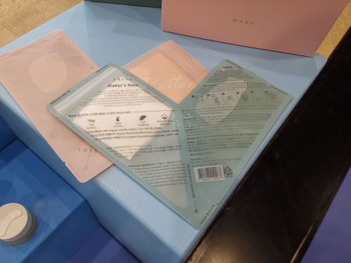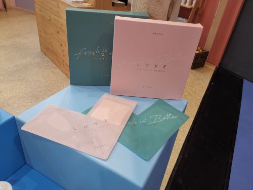 At the trade show, Urang presented its new sheet mask which looks striking: rather than going for the usual rectangular mask pack, Jina designed a dual sachet (one sachet contains the essence liquid, the other the dry sheet mask) which looks rather like a heart.