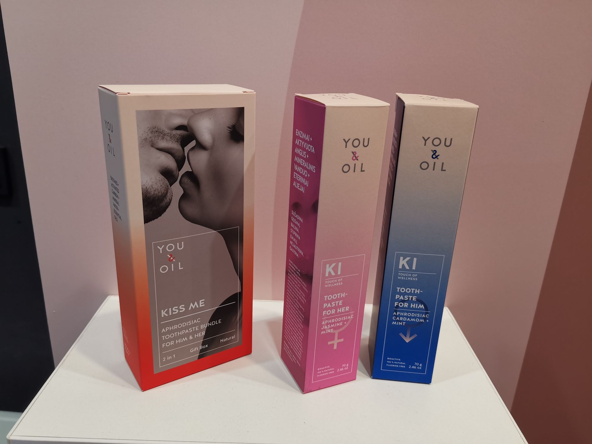 The company presented yet another unusual launch: Aphrodisiac, a 2-sku toothpaste range (pic above). There are two products, one for women (Jasmine & Mint) and one for men (Cardamon & Mint) and while these are regular toothpastes (offering a whitening effect thanks to activated charcoal, pineapple extract and mineral water) there is an interesting twist: the active essential oils used in the two variants are claimed to act as a natural libido booster if they’re mixed together : )