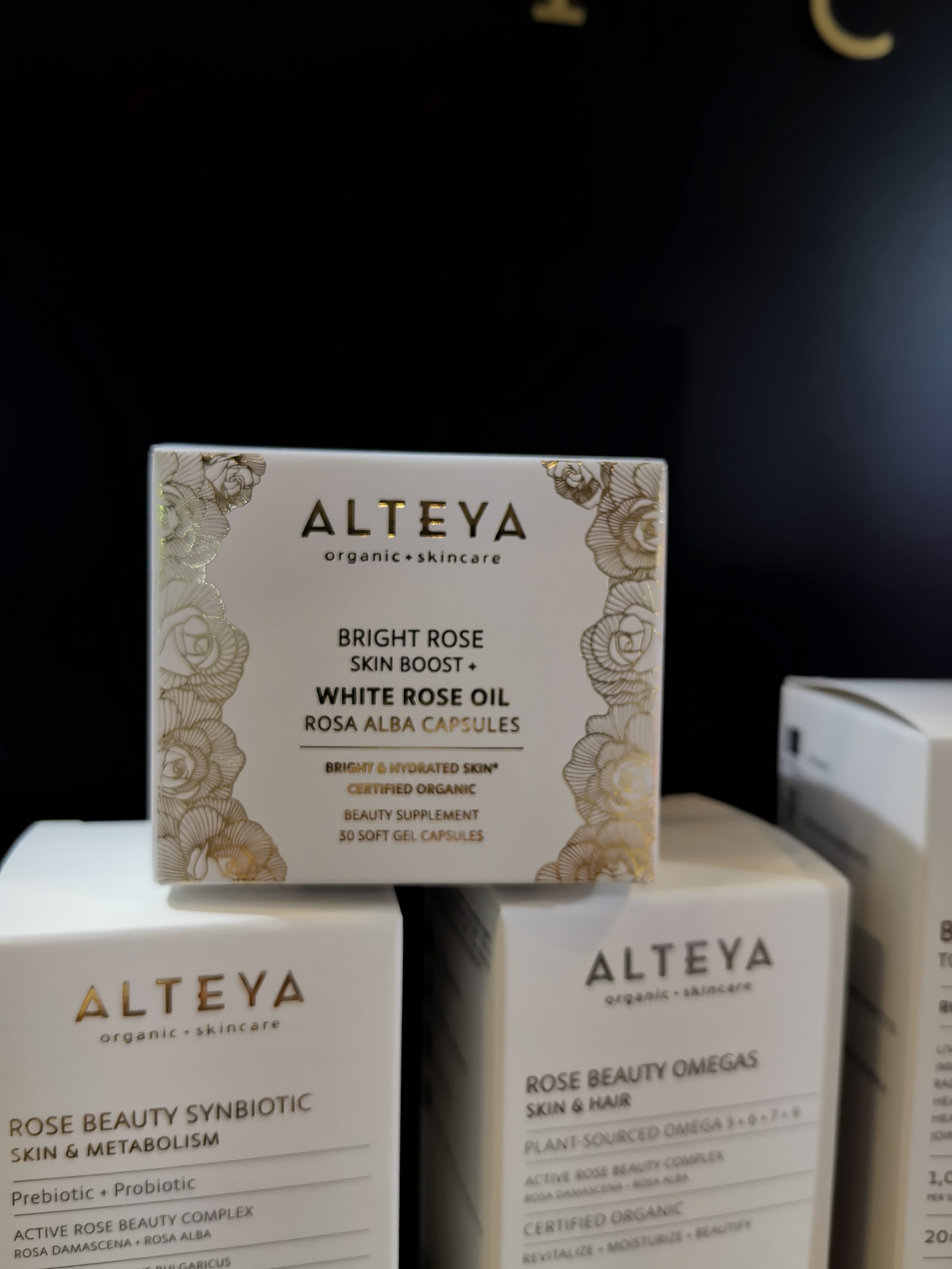 Also new in the Alteya Organics product portfolio are several rose oil-based supplements. In Bulgaria (and quite a few other Balkan/South East European countries), rose oil is a highly popular nutritional supplement – in Germany, not so much.