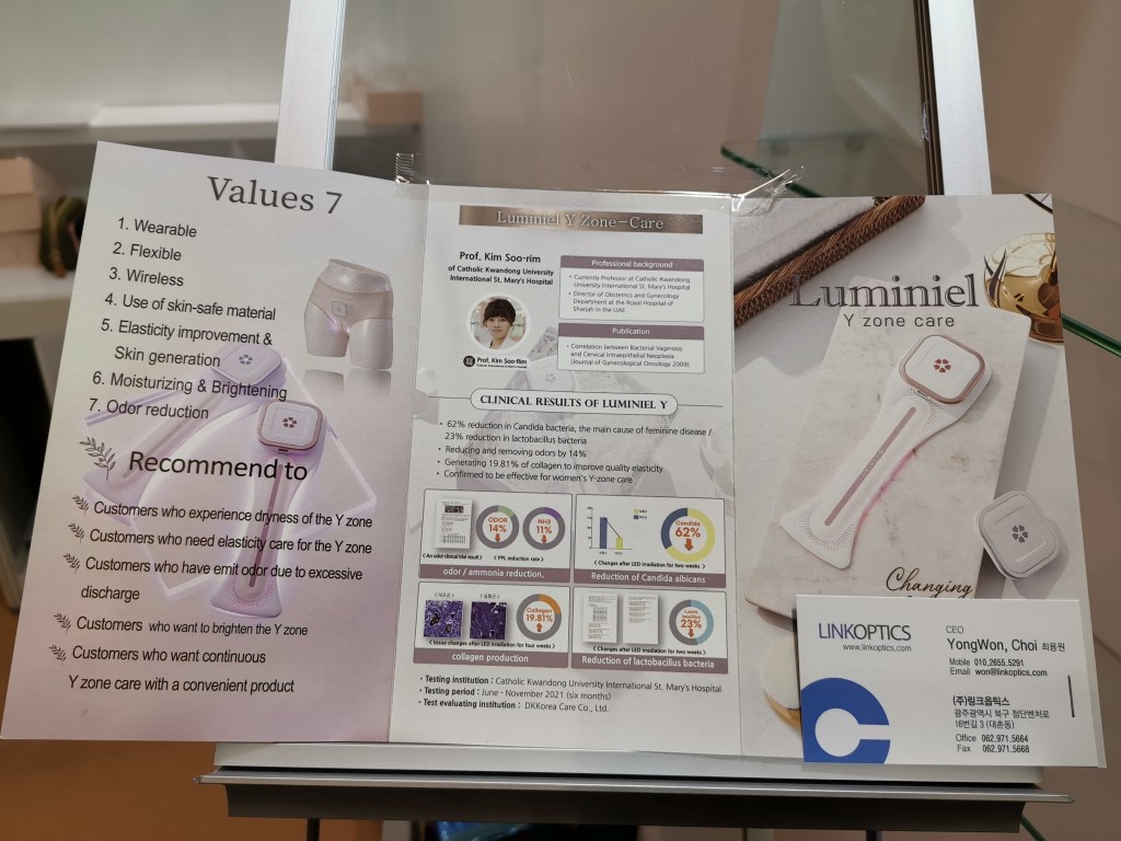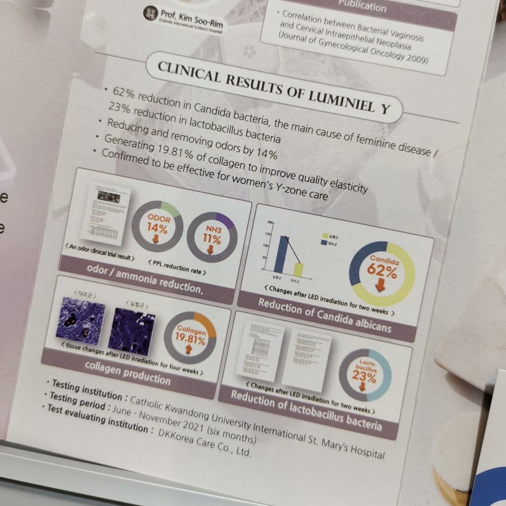 I really liked that the Luminiel is marketed as a healthcare product rather than a beautifying tool. According to the company, the device helps to reduce bacterial infections, improves the vaginal microbiome and decreases vaginal dryness. See pics above for some of the clinical research info.