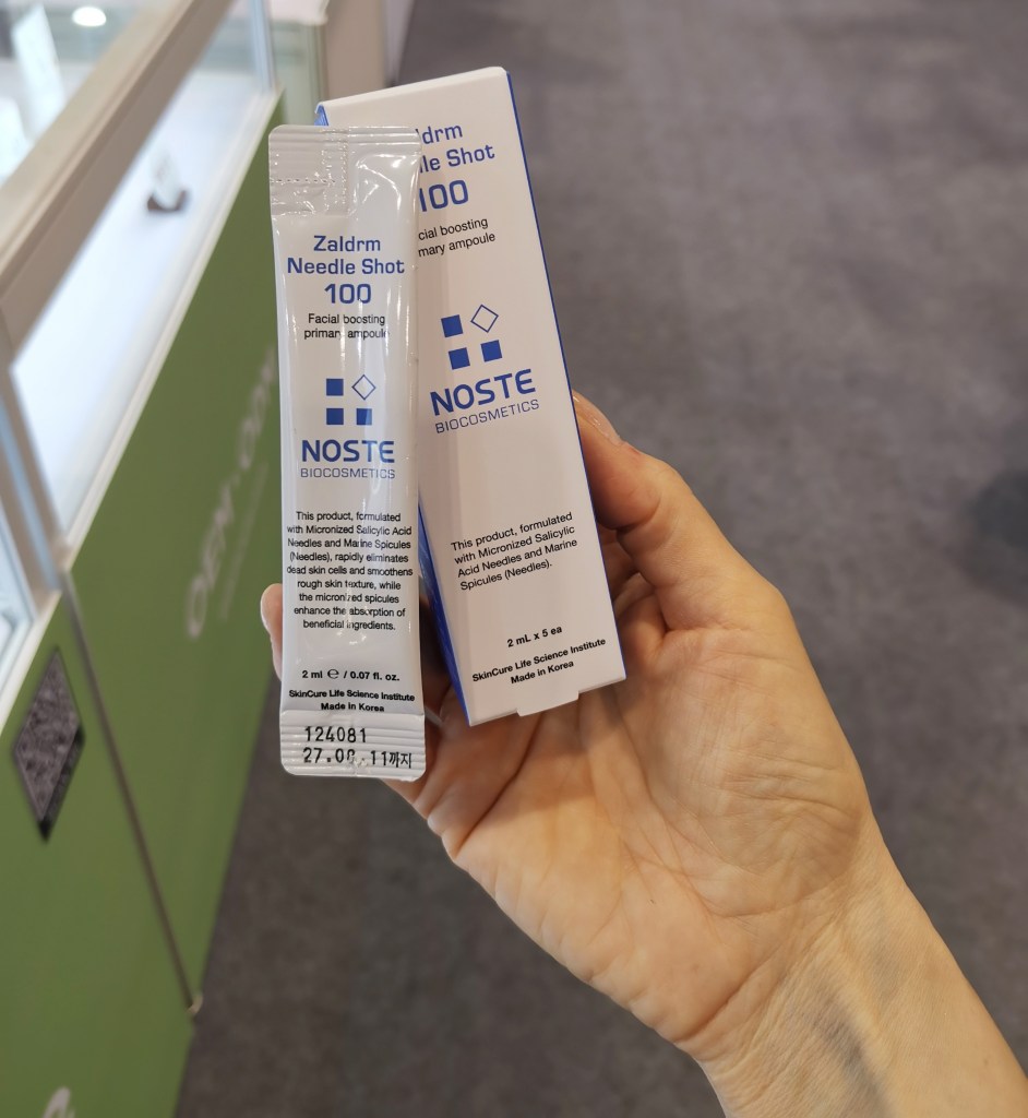 Noste’s Zaldrm Needle Shots are at the 100 concentration; I received several sample packs to try out. On my damaged skin barrier the Needle Shot prickled quite a bit when I massaged the serum into the skin but I did feel that the effects of the sheet mask I applied on top of the serum were more pronounced. However, I can only imagine how abrasive the higher concentrations must be. Shudder.