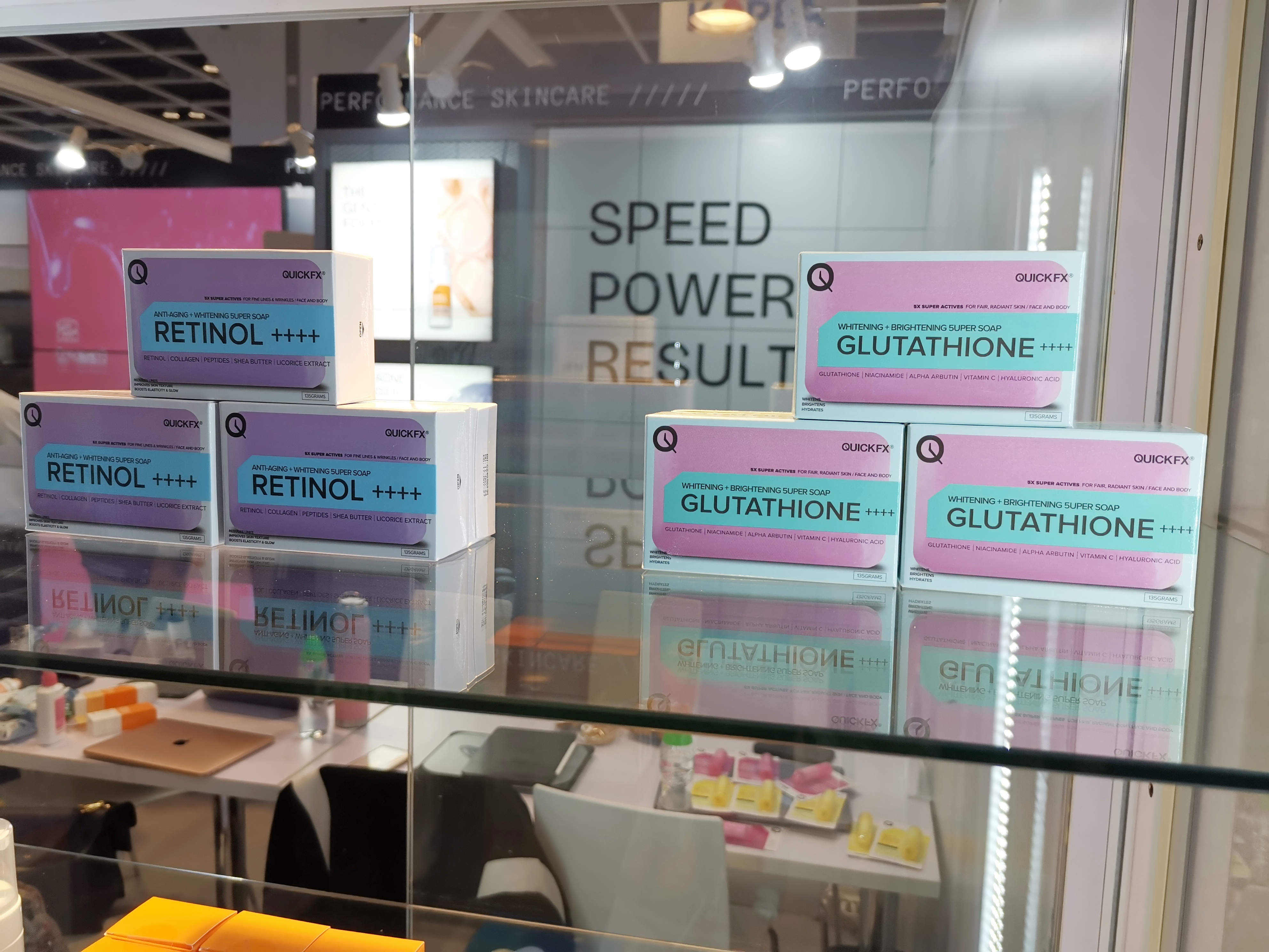 Amongst the latest QuickFX launches was the Sen-C Bright range, a three-sku line formulated with brightening vitamin C for sensitive skin and a particularly interesting new range: Three actives-led solid face and body cleansing bars. Whitening & Brightening Super Soap Glutathione++++, Anti-Ageing & Whitening Super Soap Retinol++++ and Anti-Bacterial & Whitening Super Soap Charcoal. In addition to the highlighted star ingredients, the bars also contain other actives like niacinamide, liquorice extract, vitamins, peptides, shea butter and so forth.