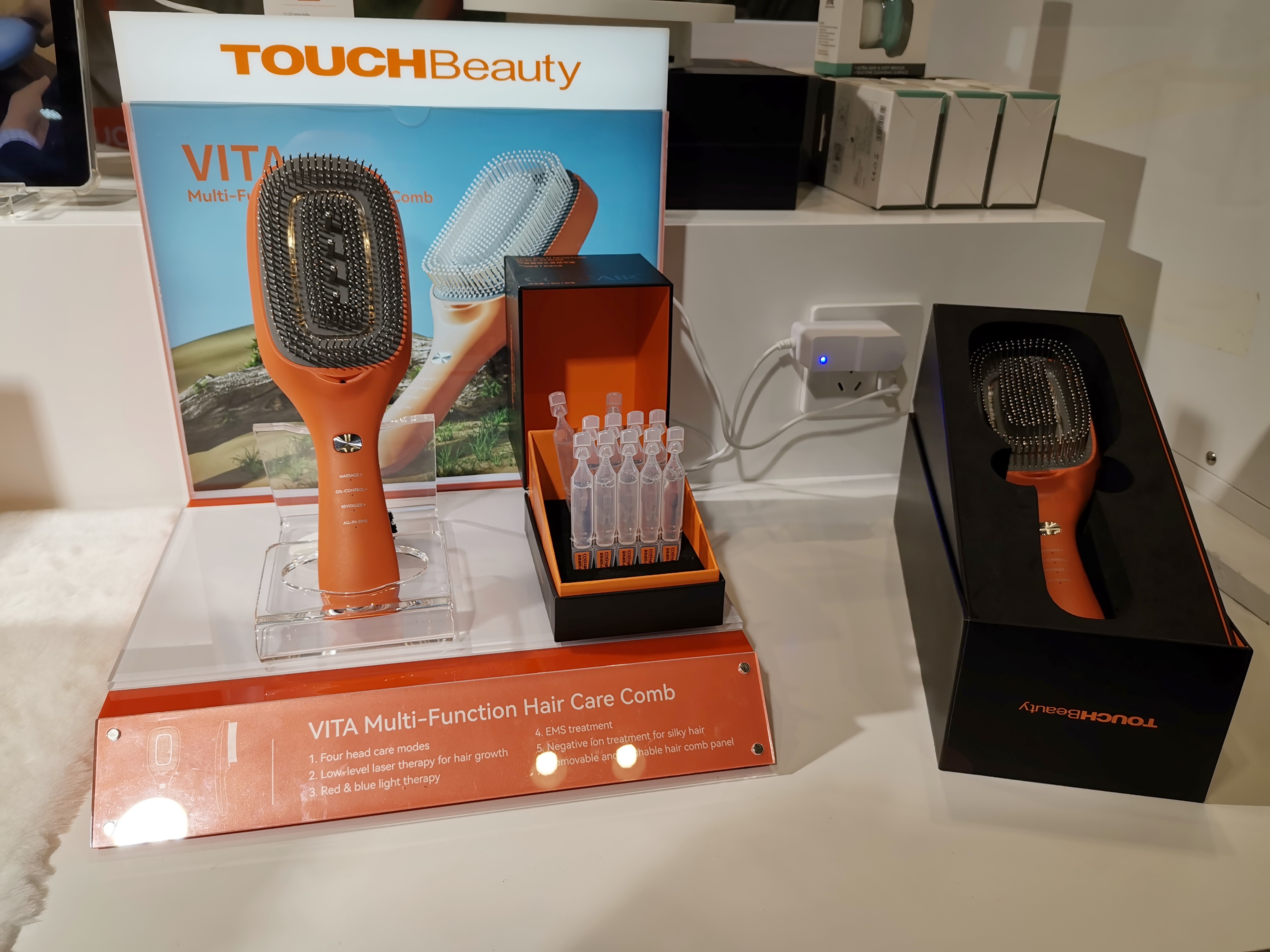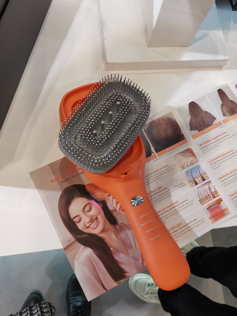 Smart hairbrush Touchbeauty Vita from Chinese company Touchbeauty Beauty & Health offers an unusual twist on the classic LED scalp care device. Most electronic/digital scalp brushes require the consumer to apply the serum or tonic to the scalp first and then massage the scalp/hair with a brush-shaped device.