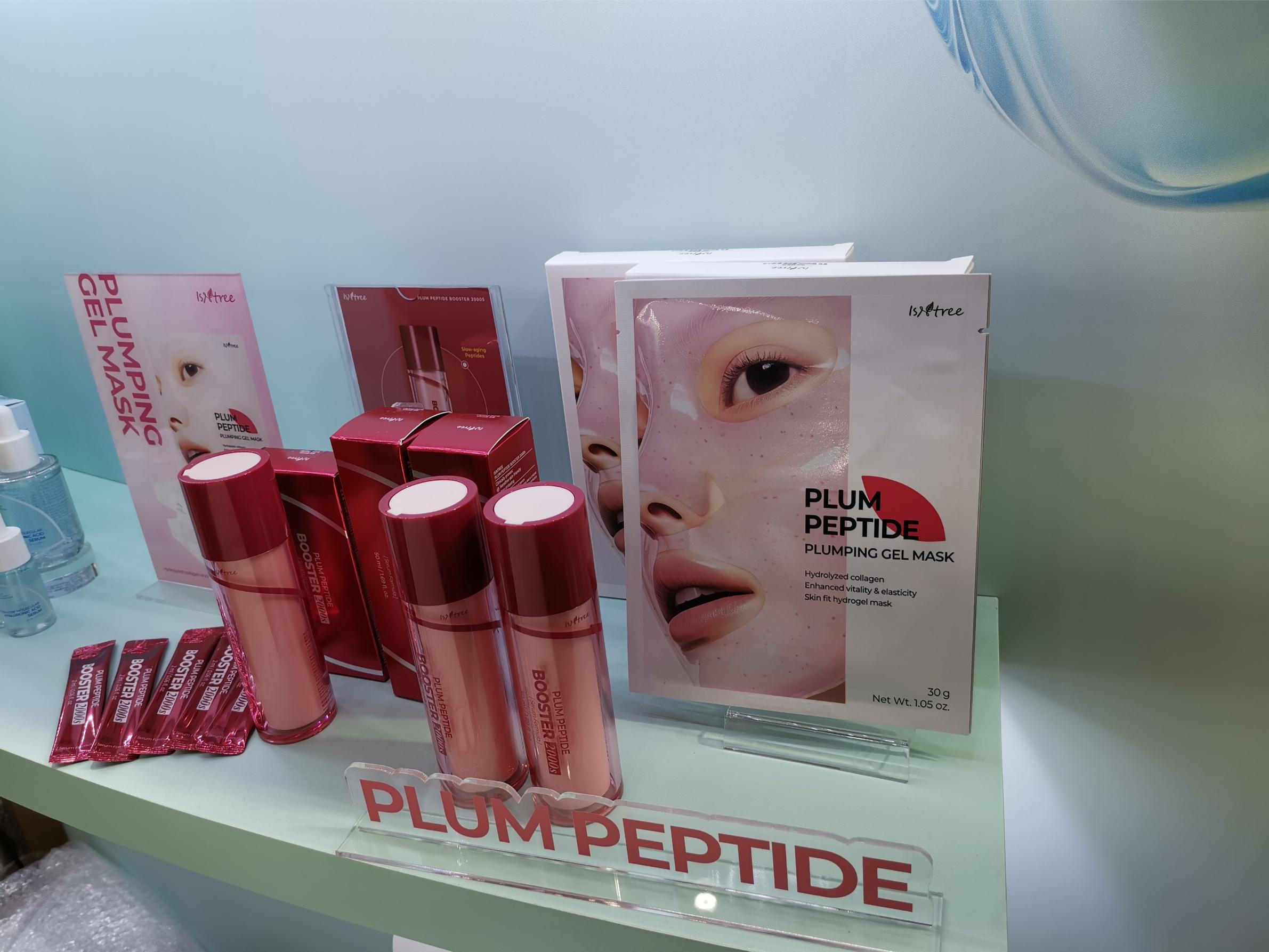 At Cosmobeauty Seoul 2025, Isntree presented a new SPF 50 PA+++ sun serum but I was more interested in the brand’s latest face care launch, the Plum Peptide range of hydrogel mask and spicule serum. The spicule serum (Plum Peptide Booster 2000) is available in two formats, by the way, as a bottled serum and individually packagd 2ml serum shots – a very popular pack size in Korea since VT Cosmetics first launched its original ReedleShots as 2ml packs.