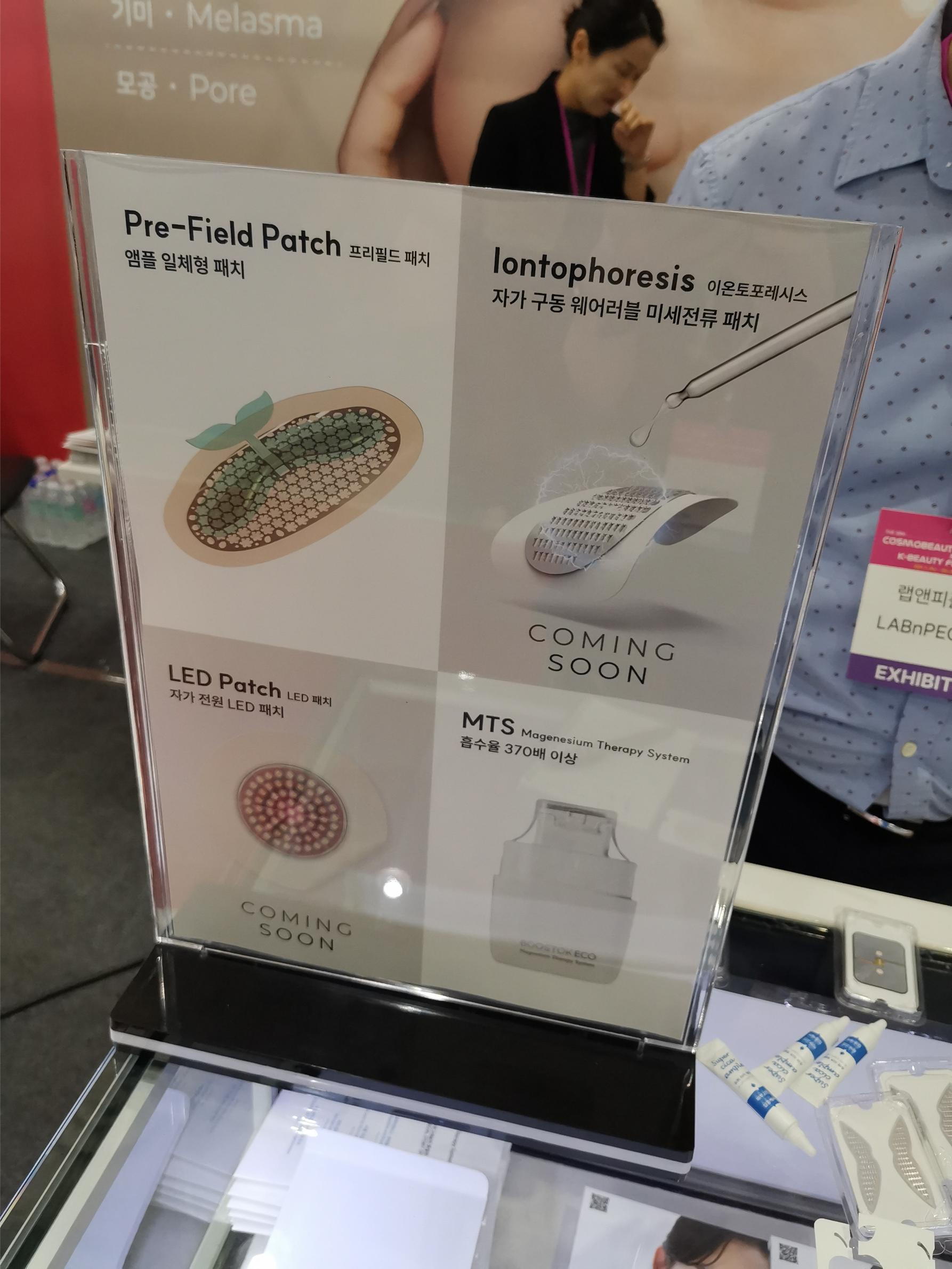 Snow2Plus always has the coolest patch innovations; they specialise in magnesium microneedle patches which are combined with other skin care technology, such as LED lights/batteries or iontophoresis (weak micro-currents) to help the ingredients to be absorbed into the skin more efficiently. At last year’s Cosmobeauty Seoul, I highlighted Snow2Plus‘ LED Pimple Patch kit – and this year, the company presented three exciting up-coming launches.