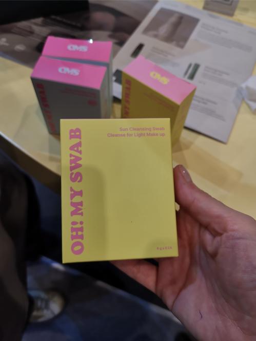The company behind Inner Saengak also presented a couple of other brands at the exhibition booth including Oh! My Swab, individually wrapped face cleansing wipes in two different strengths – one for normal makeup, one for waterproof/SPF products. Each wipe has two differently textured sides. I tried one out on my hand and was so impressed by how gentle the unscented formulation was that I bought five packs at trade show prices.