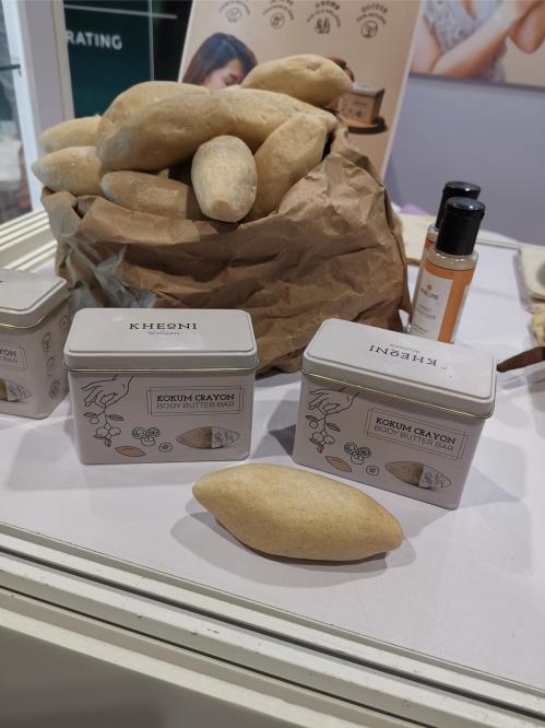 One of the most interesting ingredients that I came across at Cosmoprof Asia 2025 was at the booth of Indian sustainable wellness beauty brand Kheoni. At the booth, Kheoni presented its Kokum body butter bar – the potato-shapes you can see in the pic. I’d never heard of kokum butter so immediately had to google it: Kokum butter is the fat extracted from the seed of the Garcinia indica tree which is native to India. This plant butter has a high melting point so it’s considered one of the most stable plant butters. It’s also edible, by the way.