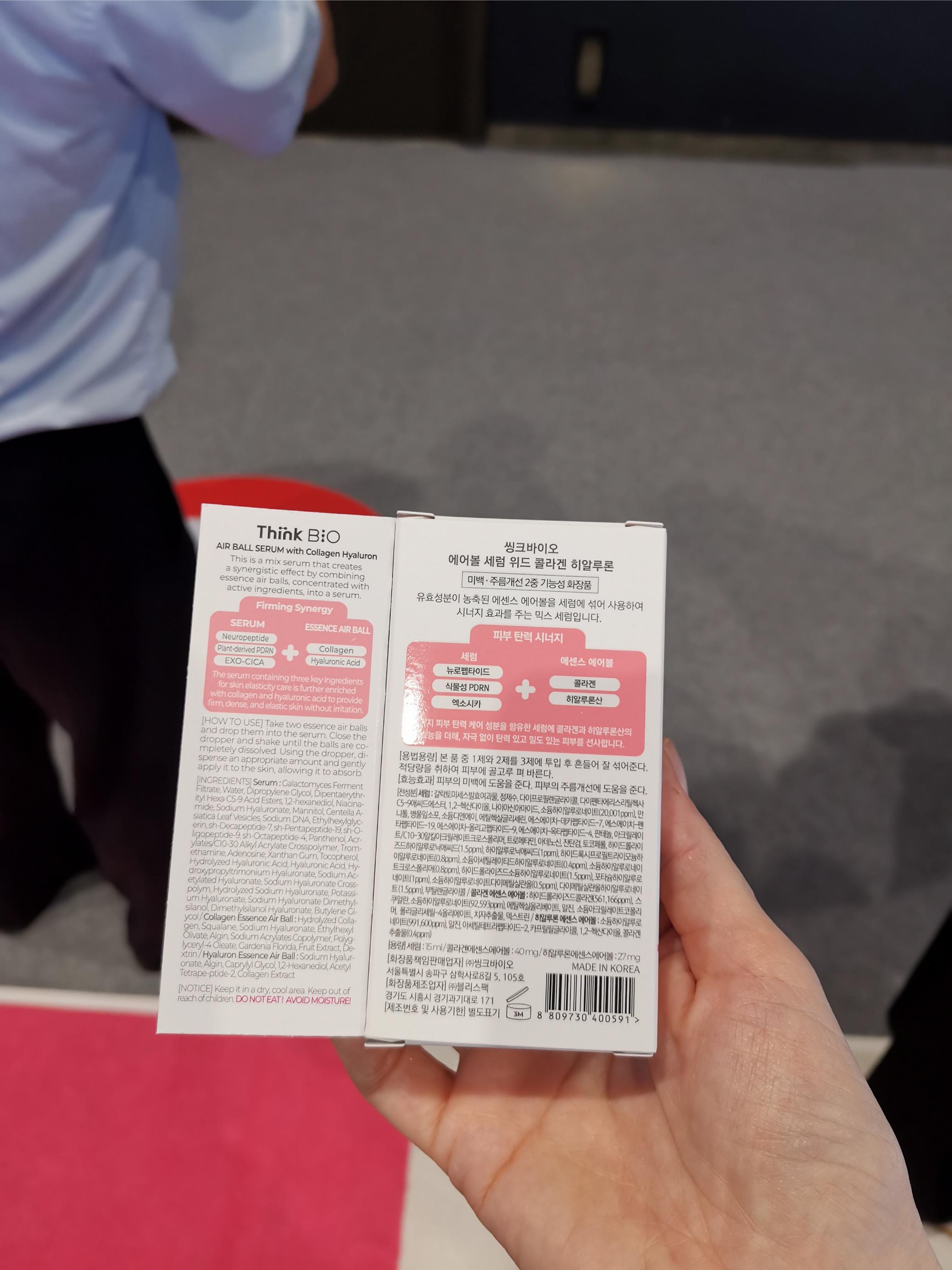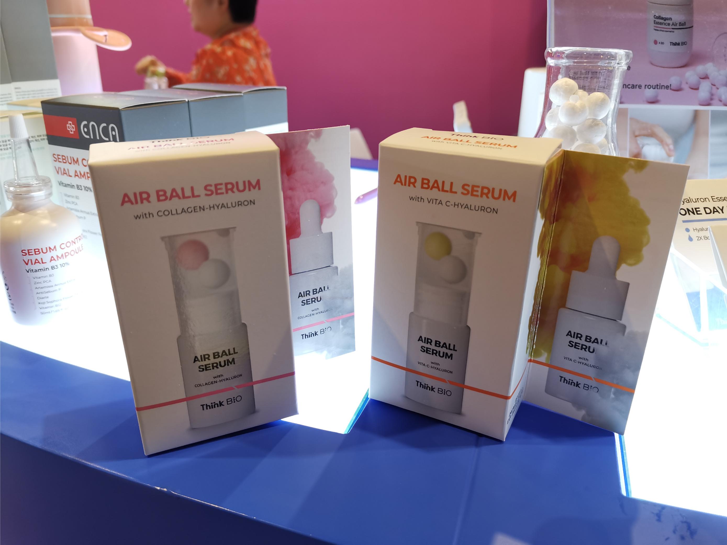 I met Think Bio at Cosmobeauty Seoul two years ago when the brand first presented its innovative freeze-dried AirBall serum spheres in two variants, Collagen and Vita-C. These are little dry balls of highly concentrated active ingredients which can be added to any liquid skin care product (toner, serum, essence etc.) to boost efficacy. At that trade show I bought a pack of the collagen AirBall spheres to try them out and really liked the product – they melt super quickly.