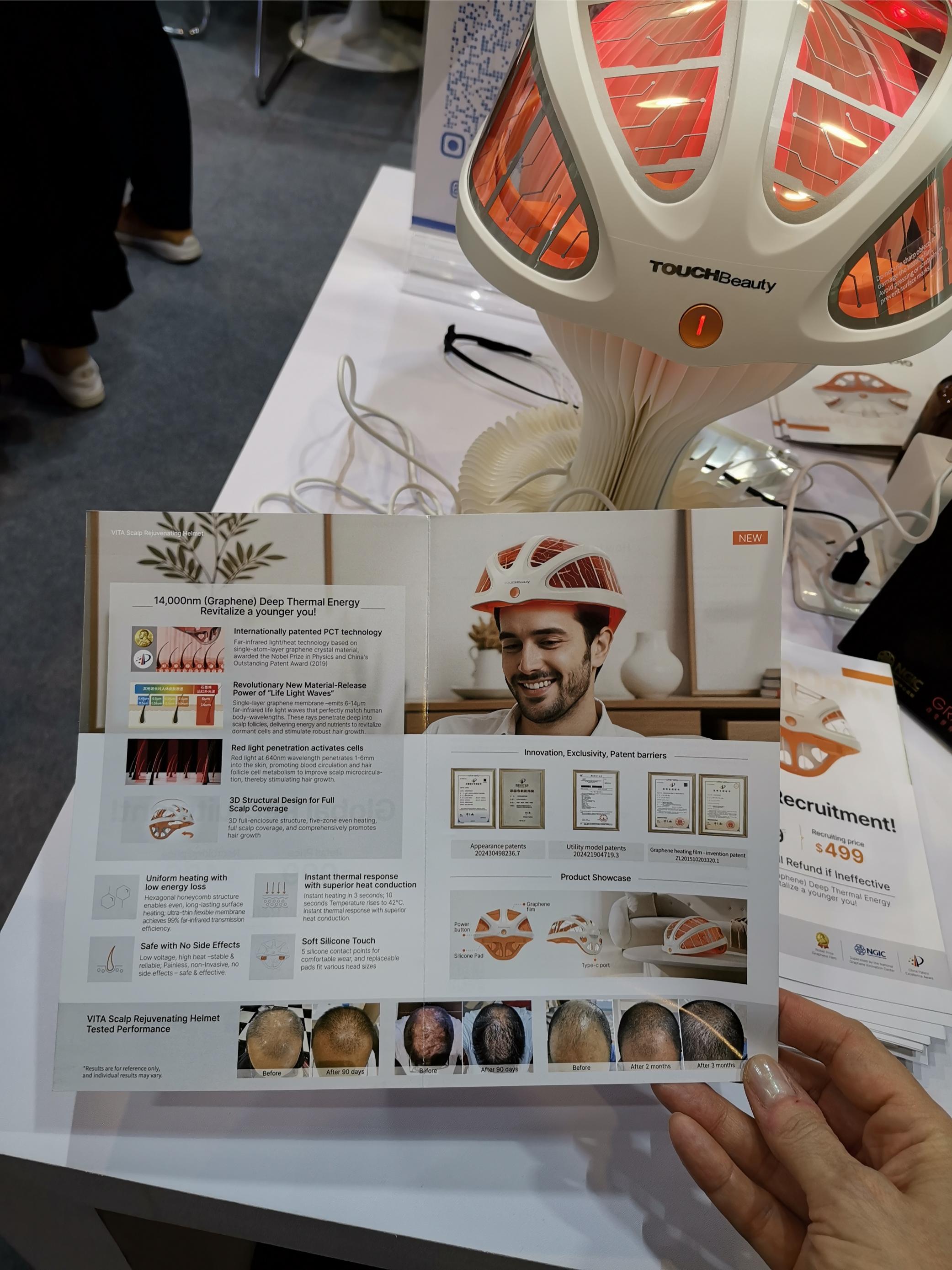 This beauty tech device might look like a bike helmet but it’s actually for scalp care, or more precisely, to stimulate hair growth. I do enjoy checking out Chinese manufacturer Touch Beauty‘s new launches whenever I see the company at a fair – there’s always something innovative to look at.