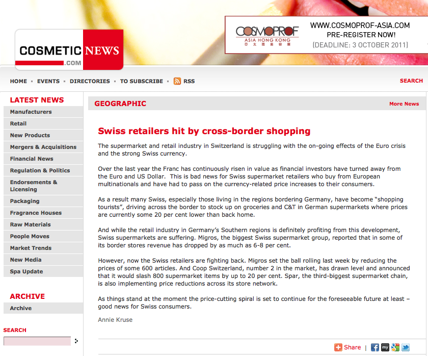 Swiss Retailers Hit By Cross-Border Shopping